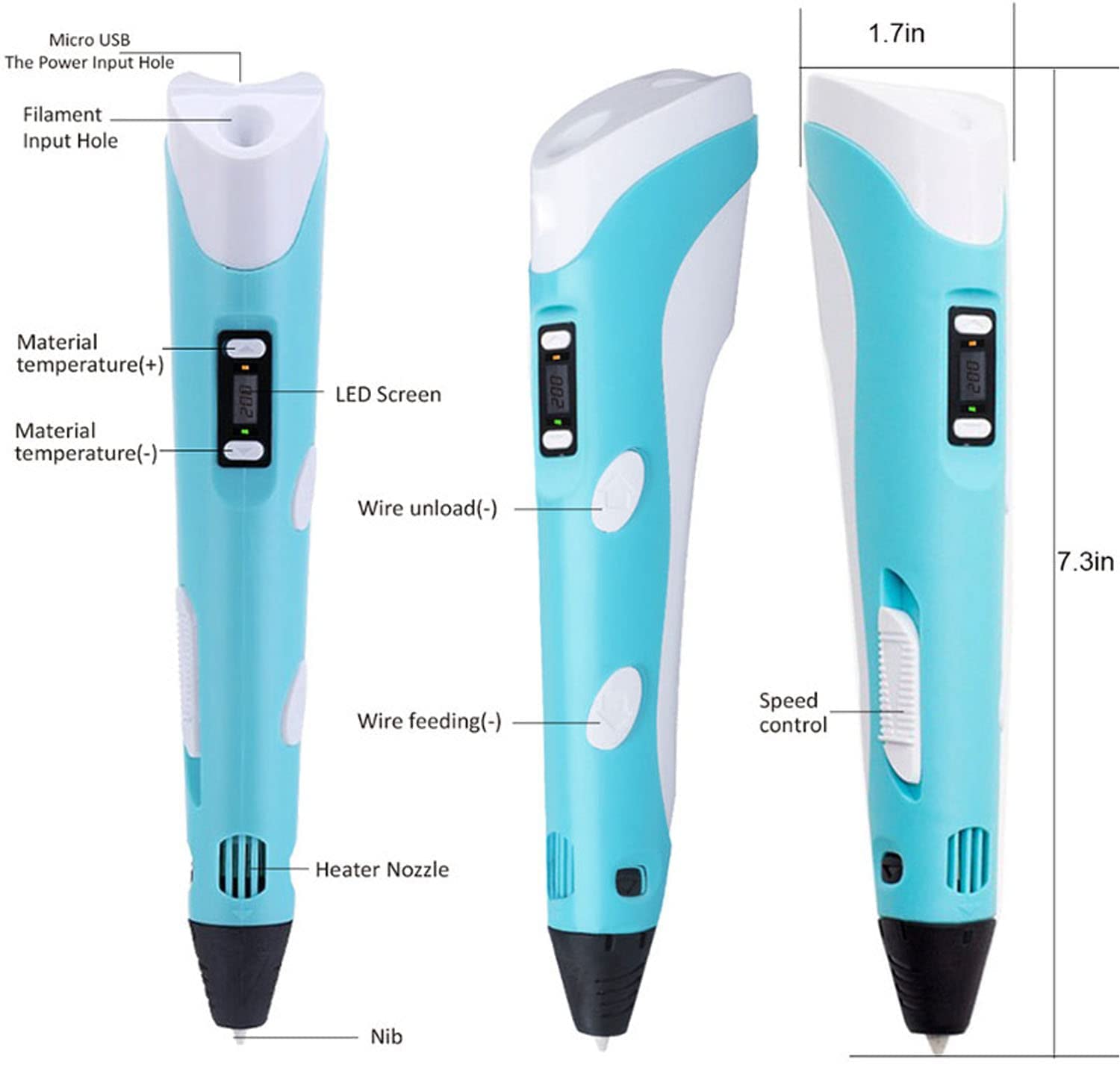 The Dreampen is a 3D magic printer pen that brings your art ideas to life. It’s perfect for kids, adults, and creatives alike. It's designed to enhance innovative and spatial thinking, and collaboration skills, making it a fun and educational tool. The pen is easy to use—just plug it in, heat it up, insert the filament, and start drawing. It features an LCD screen for precise temperature control and a speed controller for smooth operation. Compatible with both PLA and ABS filaments, the Dreampen offers a versatile and eco-friendly drawing experience. Dream bigger with the pen of the future at your fingertips today!