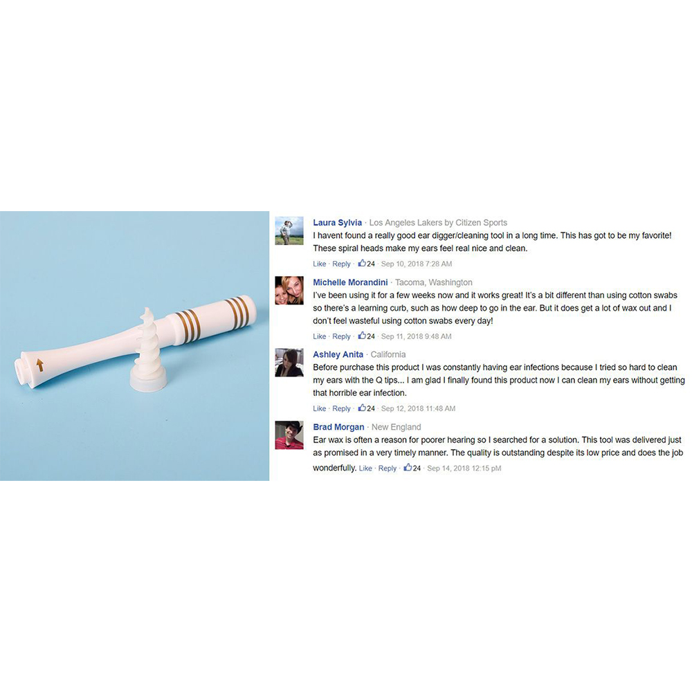 Throw away your box of cotton swabs that are painful and harmful to your inner ear membranes, and start using this soft spiral tip Ear Cleaner. Not only is this ear cleaning process more safe and painless, it is also highly effective at easily removing earwax. It bends to the shape of your inner ear and spins the earwax out instead of traditional cotton swabs that push earwax farther into your ear canal. In addition, this device is made with non-toxic and eco-friendly plastic compounds that are highly durable. Specifications: Product Dimensions: 5.2x0.9x9.5in Product Weight: 2.89oz
