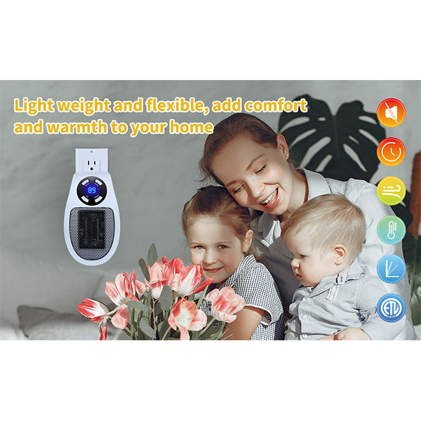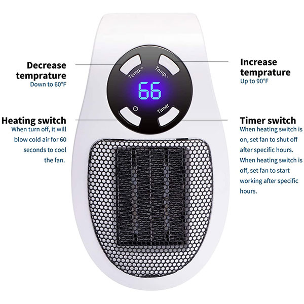 Designed with safe ceramic element interior and cool-touch exterior, Overheat Protection prevents accidents or damages from occurring. The portable heater allows you to heat up the spaces you are in to reduce energy consumption. You can lower your thermostat and lower your energy bills. This heater has three operating modes to choose from. Choose between High (1500W), Low (750W), and fan only modes for flexible heat control. A buit-in thermostat will maintain your desired temperature for optimal efficiency. It is housed with a convenient 180 degree rotating plug with 3-prongs. Equipped with overheat protection sensors to ensure the heater instantly switches off in high temperature conditions for your complete peace of mind. Input: 120V AC 60Hz Watts: 375/NA/750 Dimensions: 4.3" x 2.8" x 6.5" Operating Modes: High, Low and Fan Weight: 2.18lbs